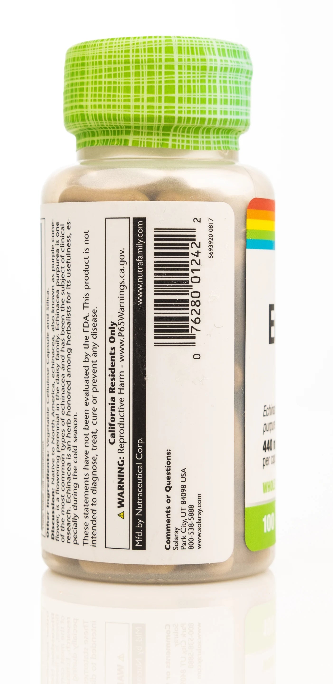 Solaray Echinacea 440mg is a dietary supplement designed to support a healthy immune system and respiratory function. Each capsule contains 440mg of Echinacea purpurea root, a flowering plant native to North America, known for its potential health-promoting properties. Echinacea is believed to stimulate the immune system and may help reduce the severity and duration of colds. This product is suitable for individuals seeking natural support for their immune health. . Please Note that product description, color, ingredients, package and other information maybe different from the original pack kindly check the product for more accurate details.